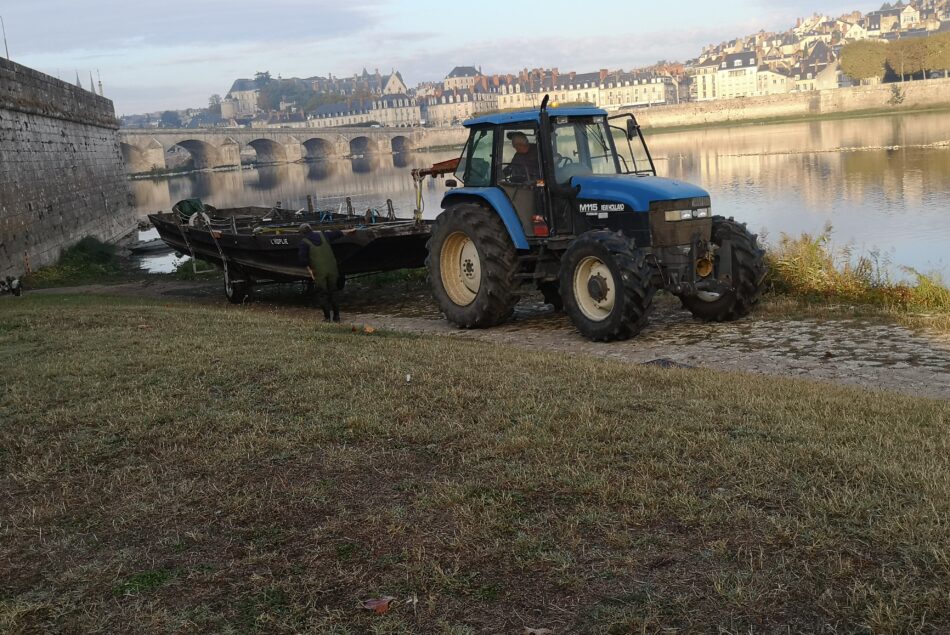 Si à la Maison de Loire de Belleville (18), on est vélo, à Blois dans le 41 on serait plutôt bateau! Dernièrement, l’équipe de navigation (salariés et bénévoles) a procédé avec minutie à la sortie de l’Hoplie, la Toue non cabanée de 12 m sur une remorque “maison”. Ceci grâce à l’entreprise Gendrier de St Claude de Diray (qui possède un tracteur) fidèle partenaire de l’association. Cela a entraîné un important travail de préparation en amont pour Olivier et Cédric. Après un briefing technique, toutes les étapes de logistique ont été respectées et bien maîtrisées, l’opération s’est donc déroulée comme prévu. La semaine prochaine, un second bateau la Toue Pierregarin “subira” le même sort. .Après, séquences nettoyage, passage de l’expert pour un bilan puis entretien complet des bateaux et moteurs. Autrement dit, du grain à moudre pour l’équipe toute la saison hivernale, en espérant un hiver pas trop rigoureux…Au mois de mars viendra le temps du renouvellement de l’agrément avec passage de la commission navigation de Nantes.
