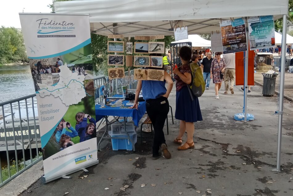 Malgré la pluie, les visiteurs étaient au rendez-vous, Alix Verbe et Thierry Poli tous les deux salariés de la Maison de la Loire de Montlouis-sur-Loire portaient les couleurs de la Fédération pour promouvoir le réseau des Maisons de Loire, ses compétences et ses actions sur les territoires.