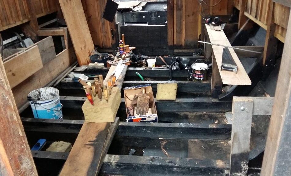 L’association possède 4 bateaux à passagers pour faire découvrir la Loire autrement à tous les publics notamment les scolaires. Et chaque bateau doit être expertisé régulièrement pour renouveler son agrément “bateaux à passagers”. D’où la sortie de deux d’entre eux, la Toue Hoplie et Pierregarin. Nettoyés, ces derniers ont été “auscultés” par l’expert sous les regards d’Olivier et Cédric les chargés de navigation. Son rapport est attendu mais d’ores et déjà les réparations ont débuté sur la Toue cabanée. En effet, devant l’important travail, il est nécessaire de tenir le programme d’entretien !