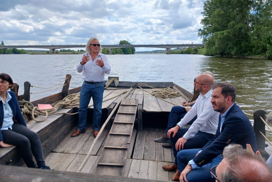 Nicolas Orgelet élu de l’Agglo, assisté de Maryline Janiak chargée de misison GEMAPI/PAPI, Jean-pierre Bessonie président de l’Observatoire Loire aux côtés de Béatrice Amossé et Alain Amiot, tous les deux coordinateurs de la structure ; rejoint par Bernard Pelaud, président de la Fédération des Maisons de Loire accompagné d’Hélène Marchiset, coordinatrice du réseau des Maisons de Loire. Tous ont reçu cette délégation avec enthousiasme et dévouement, grâce à leur attachement commun au fleuve.